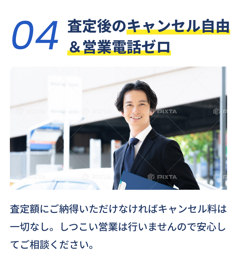 キャンセル料・手数料は一切かかりません。ご納得いただけない場合は遠慮なくキャンセルください。