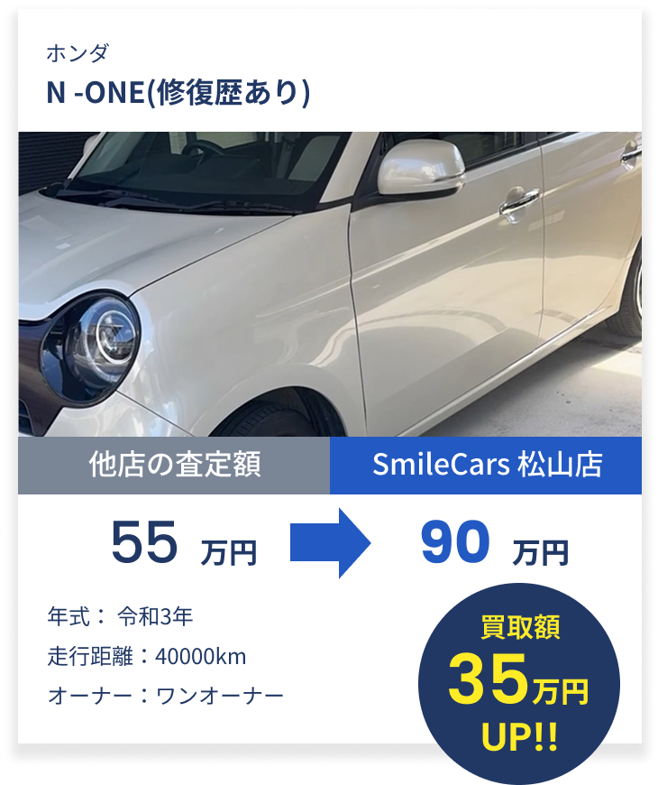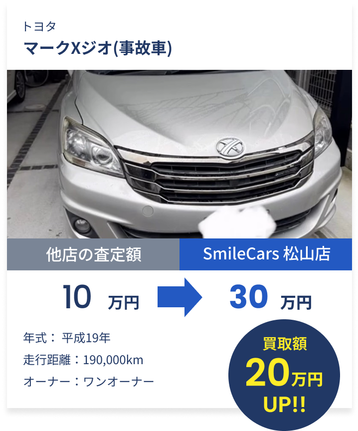 事故車・水没車でも査定可能です。修復歴を正直に申告いただければ、その分を加味した上でできる限りの高額査定を行います。